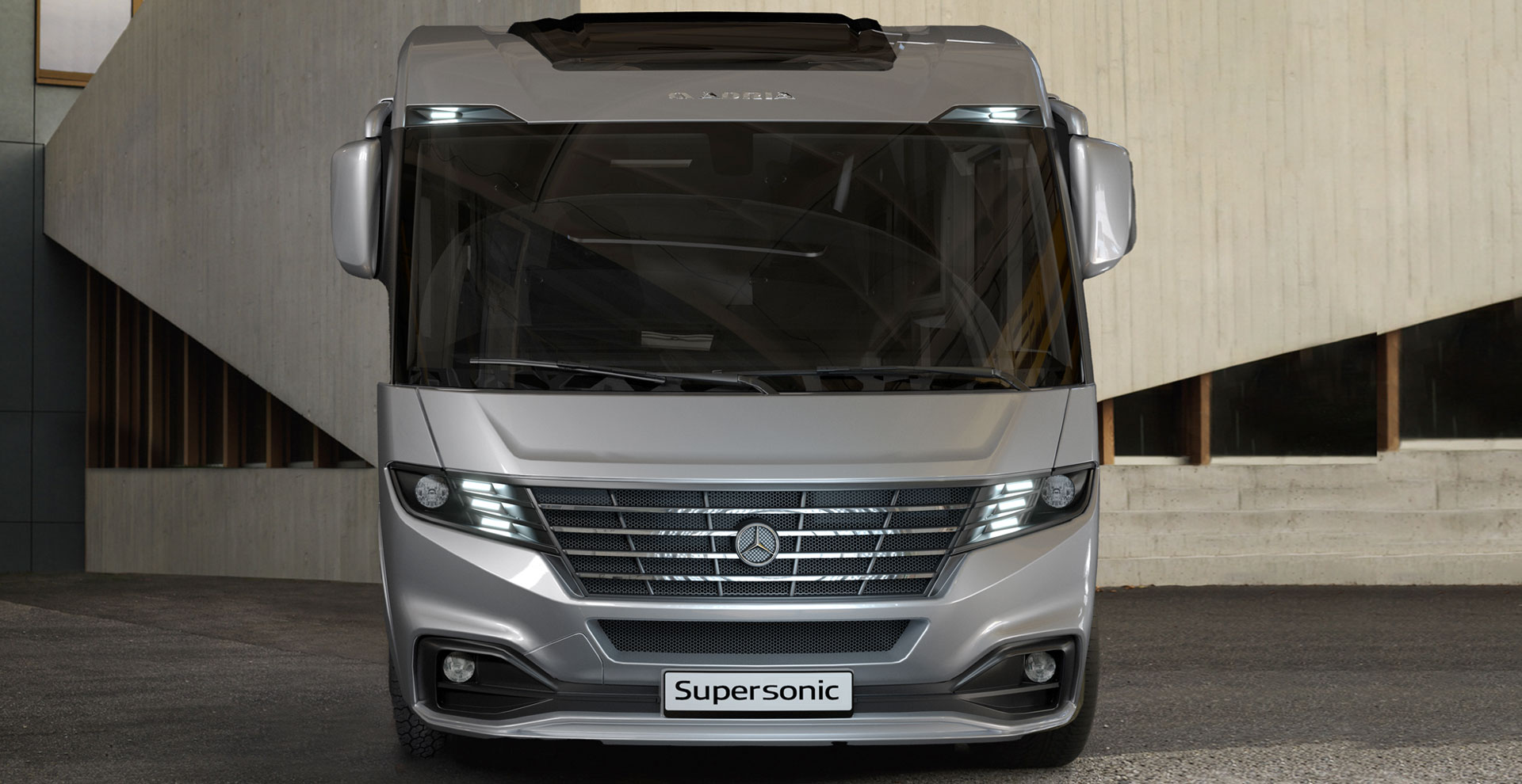 - Slående nytt design, rene billinjer og dynamisk stil, som blander Adria-signaturutseendet med Mercedes-Benz´ basisbil, med sølvmetallisk eksteriørfarge.