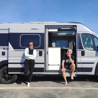 Hei! Vi er Ron og Chantel fra Instagram-kontoen «fulltime.vanlife» og har vært på veien med en Adria Twin-campingvogn siden november 2020.